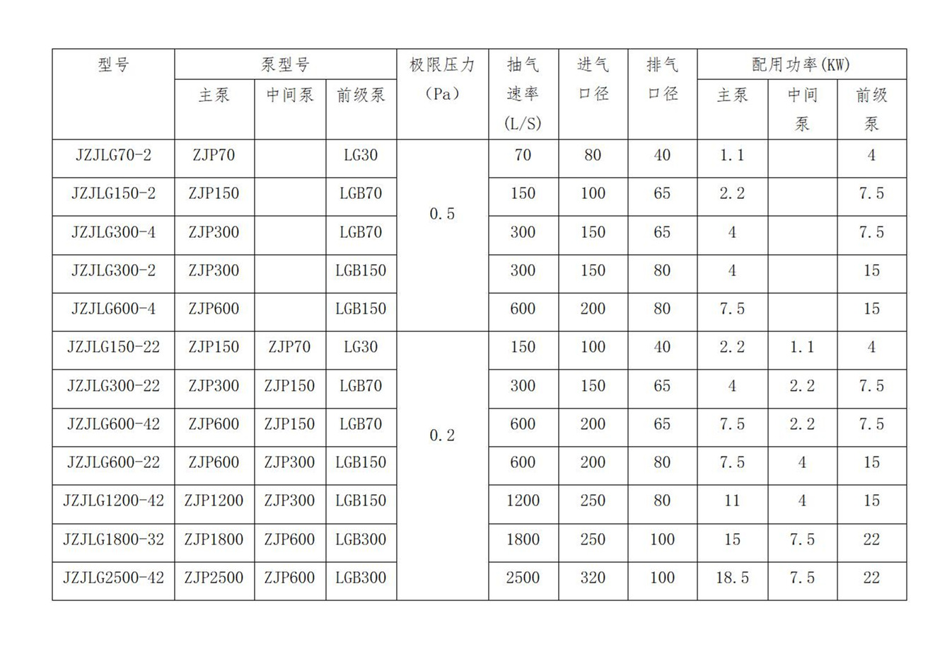 JZJLG羅茨螺桿真空機組技術參數